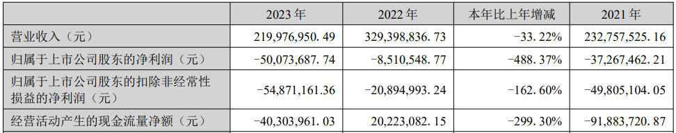 天迈科技已连亏三年。2021年、2022年、2023年,公司实现归属于上市公司股东的净利润为-3726.75万元、-851.05万元、-5007.37万元;实现归属于上市公司股东的扣除非经常性损益的净利润为-4980.51万元、-2089.50万元、-5487.12万元。