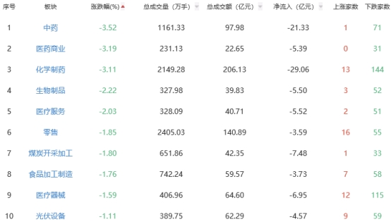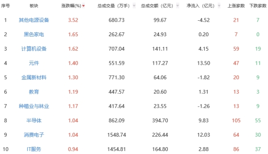行业板块方面,黑色家电、计算机设备、元件等板块涨幅居前,中药、医药商业、化学制药等板块跌幅居前。