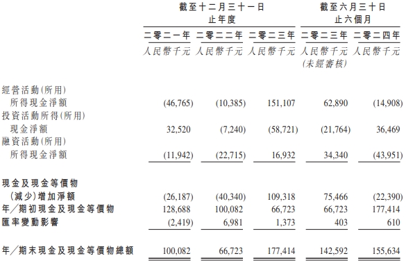 2021年、2022年、2023年及2024年1-6月,汇舸环保经营活动所得现金净额分别为-4676.5万元、-1038.5万元、1.51亿元和-1490.8万元。
