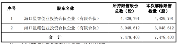 中国经济网北京1月13日讯 今日,星辉环材(300834.SZ)有7,478,403股解除限售并上市流通。