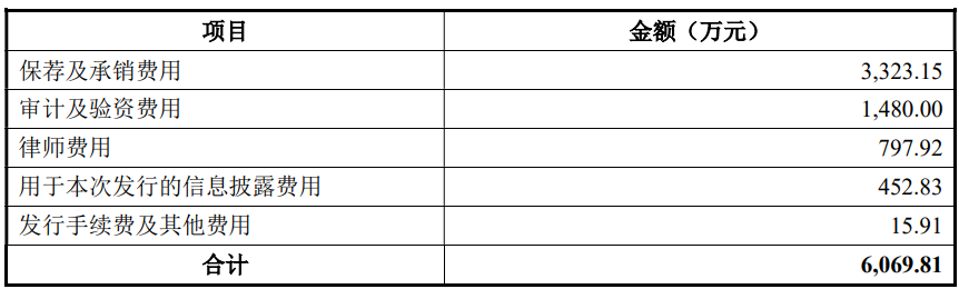 公司本次发行费用总额(不含增值税)为6,069.81万元,其中保荐及承销费用3,323.15万元。