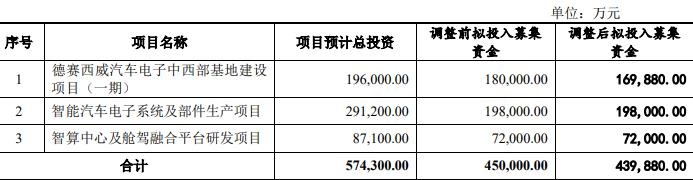 本次发行的募集资金总额不超过439,880.00万元(含本数),扣除发行费用后的募集资金净额将全部用于德赛西威汽车电子中西部基地建设项目(一期)、智能汽车电子系统及部件生产项目、智算中心及舱驾融合平台研发项目。