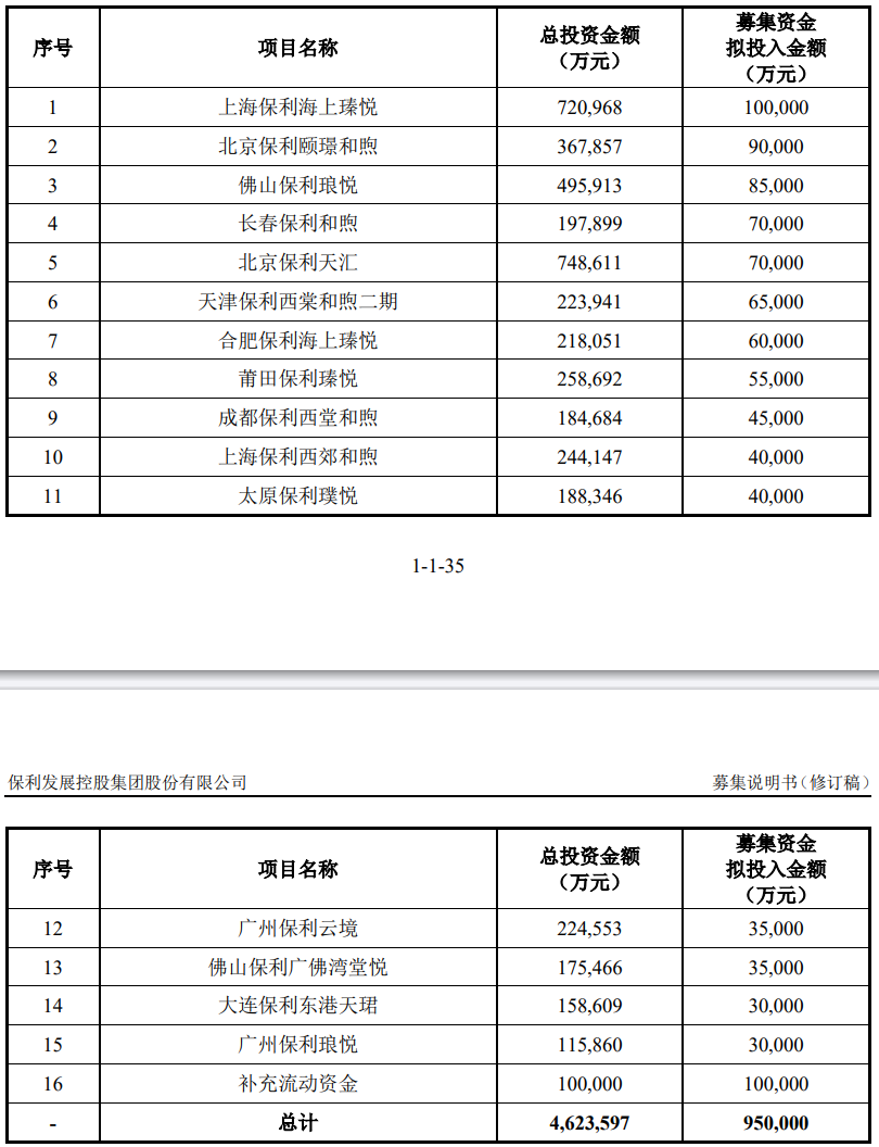 保利发展本次发行的募集资金在扣除发行费用后的净额将全部用于上海保利海上瑧悦、北京保利颐璟和煦等16个项目。本次向特定对象发行可转换公司债券募集资金净额少于项目总投资金额的部分,公司将以其他方式解决。本次向特定对象发行可转换公司债券募集资金到位之前,公司将根据项目进度的实际情况以自筹资金先行投入,并在募集资金到位之后予以置换。如果本次实际募集资金净额相对于募集资金拟投入金额存在不足,公司将通过自筹资金弥补不足部分。