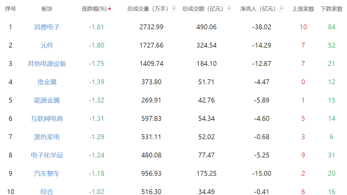 板块方面,大金融概念持续强势,保险、银行板块领涨,消费电子、元件板块跌幅居前。