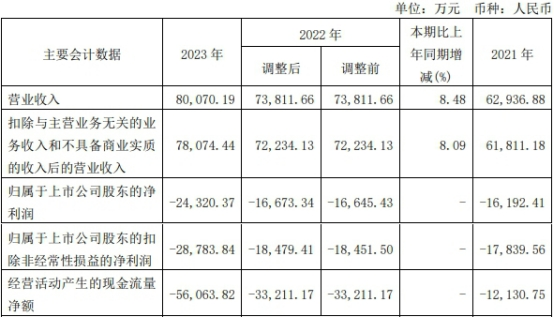 此前,亿华通已连续4年亏损。2020年、2021年、2022年、2023年,亿华通的营业收入分别为57,229.29万元、62,936.88万元、73,811.66万元、80,070.19万元;归属于上市公司股东的净利润分别为-2252.36万元、-16,192.41万元、-16,673.34万元、-24,320.37万元;归属于上市公司股东的扣除非经常性损益的净利润分别为-4,036.59万元、-17,839.56万元、-18,479.41万元、-28,783.84万元;经营活动产生的现金流量净额分别为-22,950.43万元、-12,130.75万元、-33,211.17万元、-56,063.82万元。
