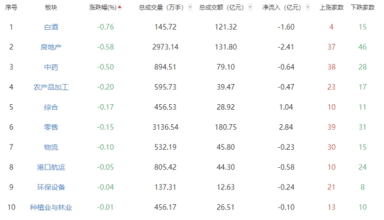 板块方面,IT服务、软件开发、互联网电商等板块涨幅居前,白酒、房地产、中药等板块跌幅居前。