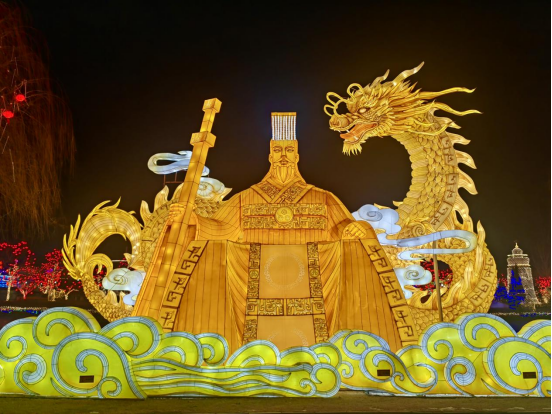 在“神话中国”主题区,盘古开天、神农尝百草、黄帝始祖等神话故事被赋予新的艺术生命。一盏盏流光溢彩的彩灯描绘着千古传奇,营造出沉浸式的神话世界,让游客在游览间仿佛步入华夏文明的起源之地,触摸神话的恢弘气息。