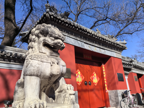 踏入法源寺,映入眼帘的是一片红色的海洋。大大小小的红灯笼高高挂起,与寺庙古色古香的建筑相互映衬,营造出浓郁的节日氛围。同时,法源寺前的广场上,市民们三五成群围坐一起,下象棋、晒太阳、闲聊;也有不少市民漫步充满“京味儿”的烂缦胡同、打卡古朴的宣南书店、探索“文艺范儿”的南半截胡同。