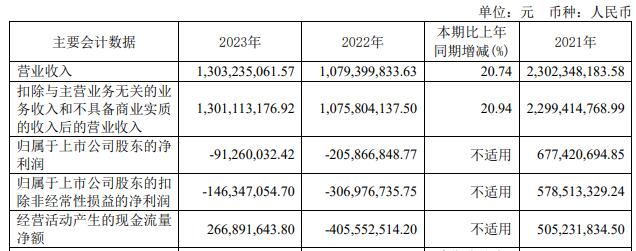 2022年、2023年,晶丰明源实现营业收入分别为10.79亿元、13.03亿元;归属于上市公司股东的净利润分别为-2.06亿元、-9126.00万元;归属于上市公司股东的扣除非经常性损益的净利润-3.07亿元、-1.46亿元。