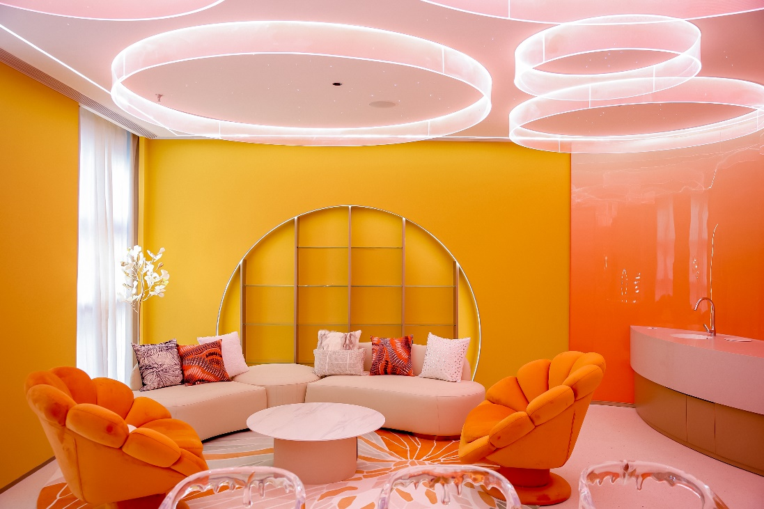 考虑到安利70%的营销人员是女性,新场馆专设女性主题社交空间——悦己坊,轻奢、温暖、私密的设计风格,支持姐妹们举办美妆、走秀、下午茶、星空夜聊、亲子等各类主题社群活动,激发女性打破桎梏,不惧蜕变,成就美丽自信的自己。