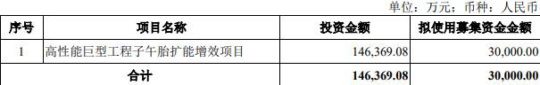 本次发行拟募集资金总额为30,000.00万元,扣除发行费用后的募集资金净额拟用于高性能巨型工程子午胎扩能增效项目。