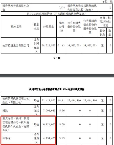 禾迈股份2024年第三季度报告显示,港智投资和韩华龙系公司第4大和第5大股东。