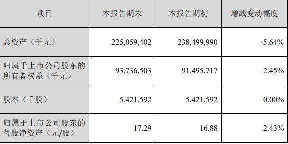 报告期内,公司总资产达2250.59亿元,期初为2385.00亿元,变动幅度减少5.64%;归属于上市公司股东的所有者权益为937.37亿元。