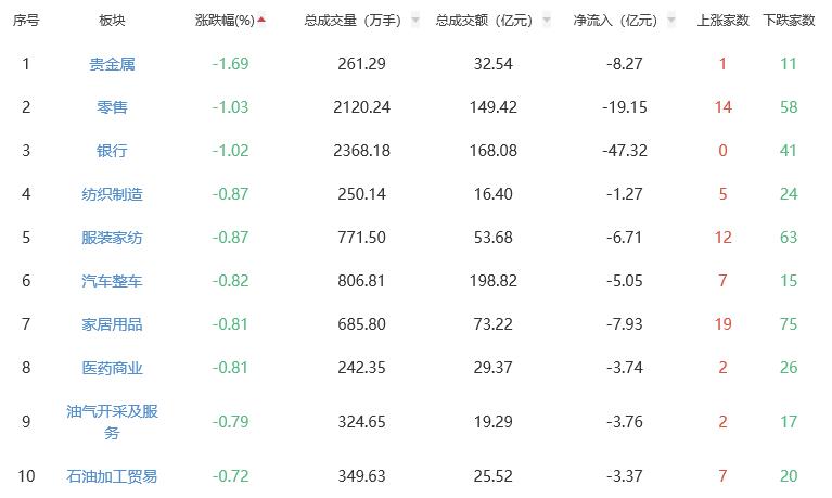板块方面,通信服务、其他电源设备、半导体等涨幅居前,贵金属、零售、银行等跌幅居前。