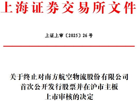 中国经济网北京2月22日讯 上交所网站昨日发布关于终止对南方航空物流股份有限公司(以下简称“南航物流”)首次公开发行股票并在沪市主板上市审核的决定。