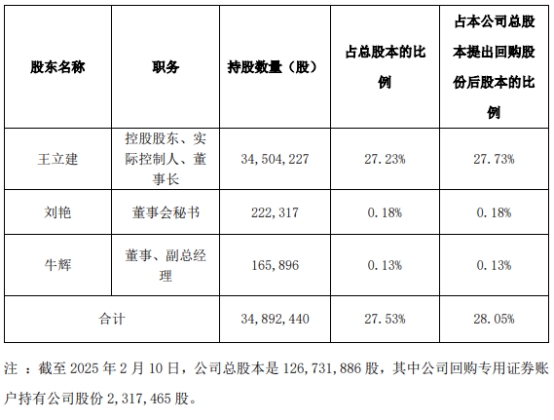 持有公司股份165,896股(占公司总股本剔除回购股份后股本的比例0.13%)的董事及高级管理人员牛辉,计划自公告发布之日起15个交易日后的三个月内,以集中竞价方式减持公司股份不超过41,400股(占公司总股本剔除回购股份后股本的比例0.03%)。