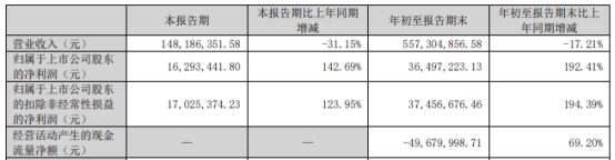 2024年前三季度,中岩大地营业收入为5.57亿元,同比下降17.21%;归属于上市公司股东的净利润3649.72万元,同比增长192.41%;归属于上市公司股东的扣除非经常性损益的净利润3745.67万元,同比增长194.39%;经营活动产生的现金流量净额为-4968.00万元。