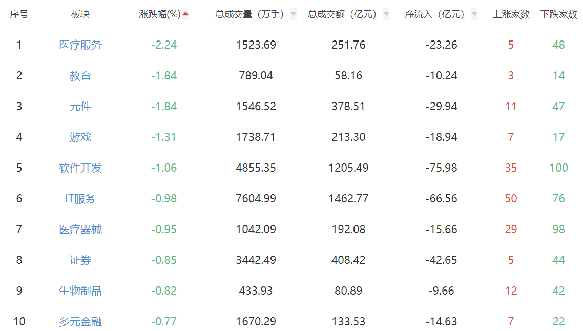 板块方面,化学纤维、机场航运、工程机械等板块涨幅居前,医疗服务、教育、元件等板块跌幅居前。