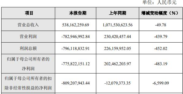 据公司2024年度业绩快报,2024年度,公司实现营业总收入53,816.23万元,较上年同期下降49.78%;归属于母公司所有者的净利润-77,582.22万元,较上年同期下降483.19%;归属于母公司所有者的扣除非经常性损益的净利润-80,920.79万元,较上年同期下降6,599.09%。