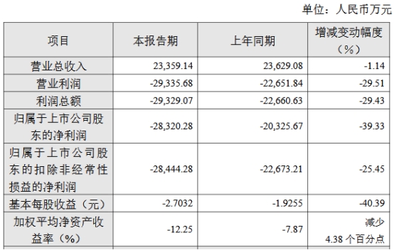 中国经济网北京2月27日讯 科思科技(688788.SH) 昨日晚间披露2024年度业绩快报公告。报告期内,公司实现营业收入23,359.14万元,较上年同期下降269.94万元,同比下降1.14%;归属于上市公司股东的净利润为-28,320.28万元,较去年同期减少7,994.61万元,同比下降39.33%;归属于上市公司股东的扣除非经常性损益的净利润-28,444.28万元,较去年同期减少5,771.07万元,同比下降25.45%;公司基本每股收益-2.7032元,较上年同期减少0.7777元,同比下降40.39%。