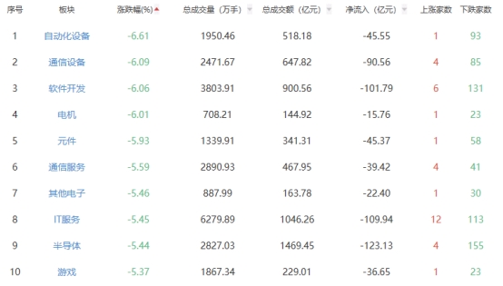 板块方面,油气开采及服务、白酒板块上涨,自动化设备、通信设备、软件开发等板块跌幅居前。