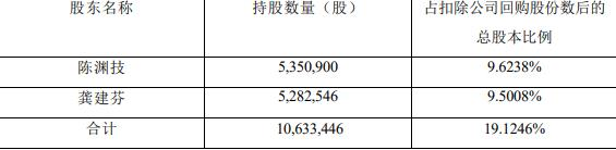 公司称,本次减持计划最终是否按期实施将根据市场情况决定,因此尚存在不确定性。陈渊技、龚建芬不是公司控股股东、实际控制人,本次股份减持计划系股东的正常减持行为,不会对公司治理结构、股权结构及未来持续经营产生重大影响,也不会导致公司控制权发生变更。