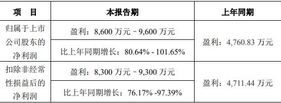 据公司2024年年度业绩预告,2024年,归属于上市公司股东的净利润预计盈利8,600万元至9,600万元,比上年同期增长80.64%至101.65%;扣除非经常性损益后的净利润预计盈利8,300万元至9,300万元,比上年同期增长76.17%至97.39%。