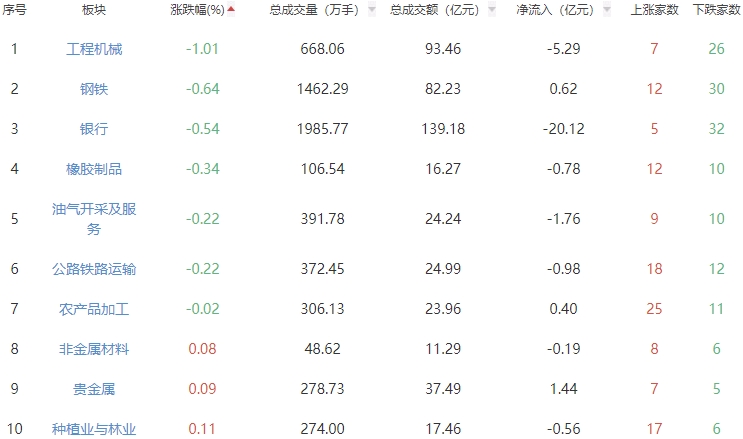 板块方面,软件开发、IT服务、游戏等板块涨幅居前,工程机械、钢铁、银行等板块跌幅居前。