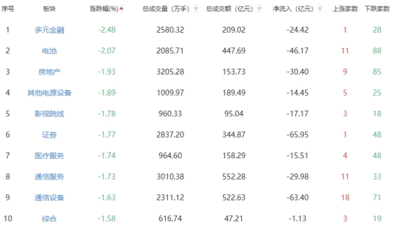 板块方面,小金属、工业金属、工程机械等板块涨幅居前,多元金融、电池、房地产等板块跌幅居前。