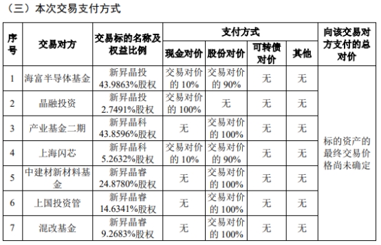 中国经济网北京3月10日讯 沪硅产业(688126.SH)今日复牌。沪硅产业上周五(3月7日)晚间披露的发行股份及支付现金购买资产并募集配套资金暨关联交易预案显示,本次发行股份及支付现金购买资产为上市公司收购控股子公司少数股权。上市公司拟通过发行股份及支付现金的方式购买交易对方持有的标的资产,即上海新昇晶投半导体科技有限公司(以下简称“新昇晶投”)46.7354%股权、上海新昇晶科半导体科技有限公司(以下简称“新昇晶科”)49.1228%股权和上海新昇晶睿半导体科技有限公司(以下简称“新昇晶睿”)48.7805%股权。