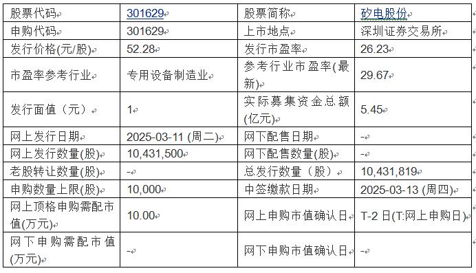 2025年3月10日,矽电股份发布的首次公开发行股票并在创业板上市发行公告显示,按本次发行价格52.28元/股计算,预计募集资金总额为54,537.55万元,扣除预计发行费用约8,184.68万元(不含增值税)后,预计募集资金净额约为46,352.87万元。