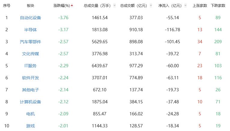 板块方面,煤炭开采加工、电力、油气开采及服务、医药商业等涨幅居前,自动化设备、半导体、汽车零部件、文化传媒等跌幅居前。