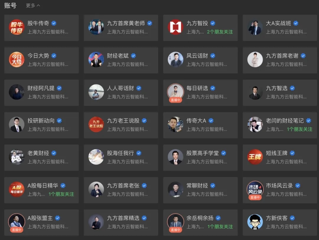 去年四季度以来,随着资本市场交易活跃度提升,一些持牌机构为了吸引新客户扩大业务,在直播中通过各种方式推荐个股。上述活动的合规性引发质疑和关注,其中拥有231万粉丝的“洪帮主”在相关报道中被点名,资料显示,“洪帮主”认证为九方云投资顾问。