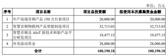 汉桑科技拟在深交所创业板公开发行股票不超过3,225万股,本次发行不涉及老股东公开发售其所持有的公司股份。本次发行股数占公司发行后总股本的比例不低于25%。汉桑科技拟募集资金100,190.18万元,分别用于年产高端音频产品150万台套项目、智慧音频物联网产品智能制造项目、智慧音频及AIoT新技术和新产品平台研发项目、补充流动资金。