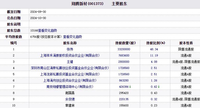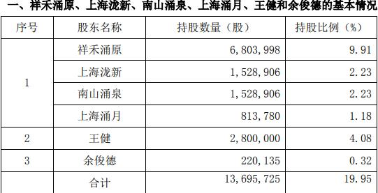 截至2024年9月30日,除王健外,祥禾涌原、上海泷新、南山涌泉、上海涌月、余俊德均在公司前十大股东之列。