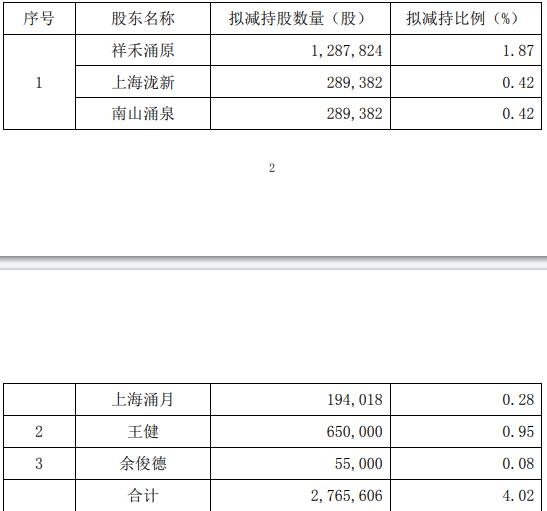 公司表示,祥禾涌原、上海泷新、南山涌泉、上海涌月、王健和余俊德均不属于公司控股股东、实际控制人,本次减持计划的实施不会导致公司控制权发生变更,不会对公司治理结构及持续经营产生重大影响。