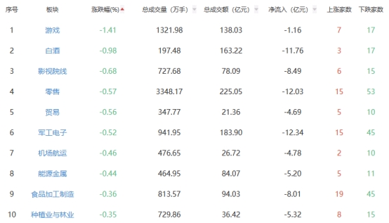 行业板块方面,贵金属、港口航运等板块涨幅居前,游戏、白酒等板块跌幅居前。