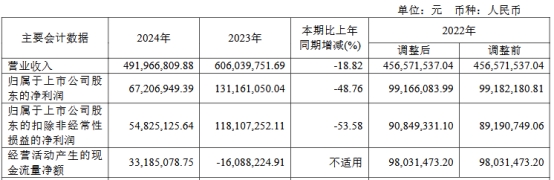 中国经济网北京3月20日讯 华曙高科(688433.SH)昨日晚间披露2024年年度报告。2024年,公司实现营业收入4.92亿元,同比下降18.82%;归母净利润为6720.69万元,同比下降48.76%;扣非归母净利润为5482.51万元,同比下降53.58%;经营现金流净额为3318.51万元。