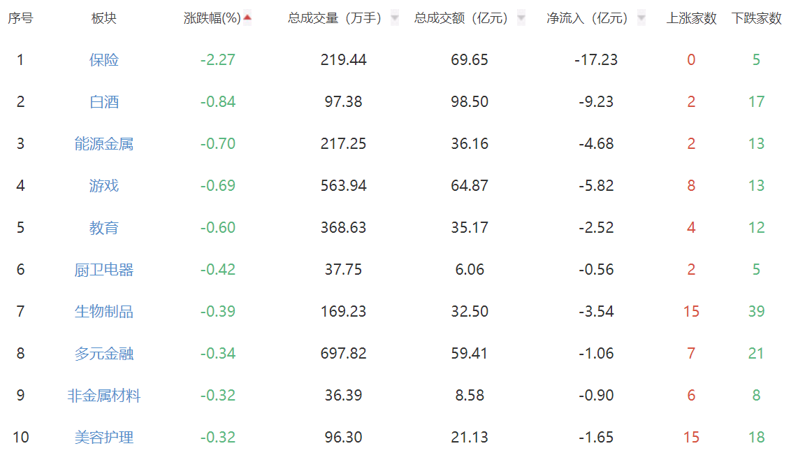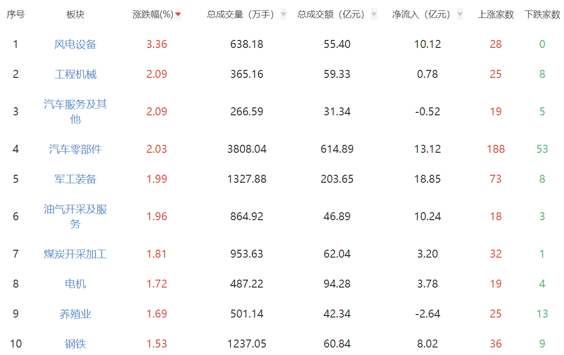 行业板块方面,风电设备、工程机械等板块涨幅居前,保险、白酒、游戏等板块跌幅居前。