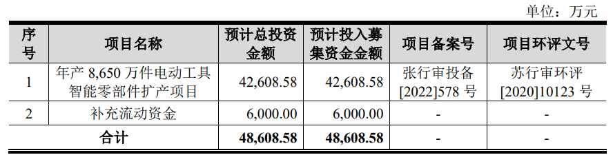 招股书显示,华之杰拟在上交所主板上市,公司拟募集资金48,608.58万元,用于年产8,650万件电动工具智能零部件扩产项目、补充流动资金。