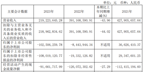 2022年、2023年,中科通达归属于上市公司股东的净利润分别为-844.39万元、-10250.63万元;归属于上市公司股东的扣除非经常性损益的净利润分别为-1933.21万元、-10801.91万元。