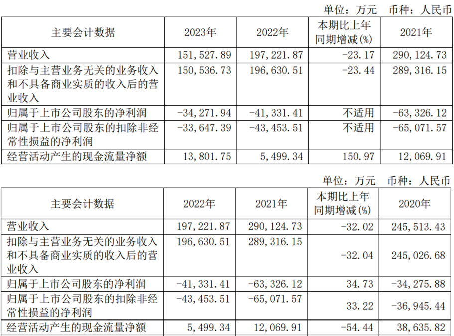 2020年、2021年、2022年和2023年,优刻得实现归属于上市公司股东的净利润-3.43亿元、-6.33亿元、-4.13亿元和-3.43亿元,公司最近5年均亏损。