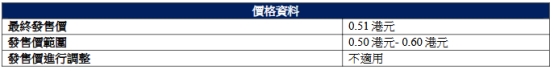 舒宝国际的最终发售价为0.51港元,所得款项总额为127.5百万港元,扣除按最终发售价计算之预计应付上市开支41.5百万港元,所得款项净额86.0百万港元。