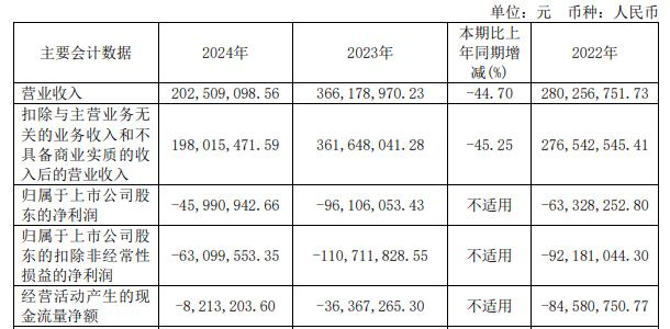中国经济网北京4月7日讯 禾信仪器(688622.SH)近日发布的2024年年度报告显示,2024年公司实现营业收入2.03亿元,同比下降44.70%;实现归属于上市公司股东的净利润-4599.09万元,上年同期为-9610.61万元;实现归属于上市公司股东的扣除非经常性损益的净利润-6309.96万元,上年同期为-1.11亿元;经营活动产生的现金流量净额-821.32万元,去年同期为-3636.73万元。