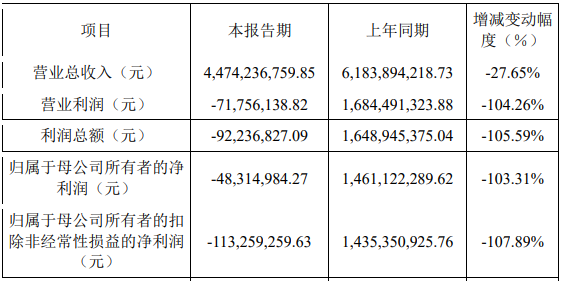高测股份2024年度业绩快报公告显示,公司2024年实现营业总收入44.74亿元,同比下降27.65%;归属于母公司所有者的净利润-4831.50万元,上年同期为14.61亿元;归属于母公司所有者的扣除非经常性损益的净利润-1.13亿元,上年同期为14.35亿元。