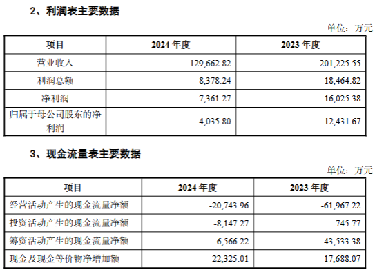 2023年至2024年,泰豪军工营业收入为201,225.55万元、129,662.82万元,净利润16,025.38万元、7,361.27万元,归属于母公司股东的净利润12,431.67万元、4,035.80万元,经营活动产生的现金流量净额-61,967.22万元、-20,743.96万元。