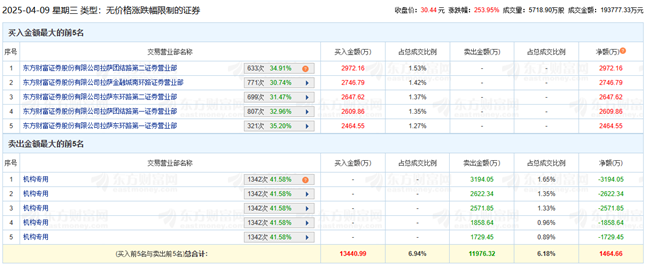 泰鸿万立龙虎榜:机构包揽卖出前5 净卖出共1.2亿元