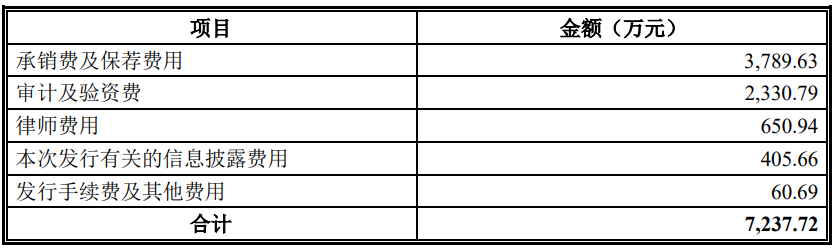 泰禾股份本次发行费用(不含增值税)总额为7,237.72万元,其中承销费及保荐费用3,789.63万元。
