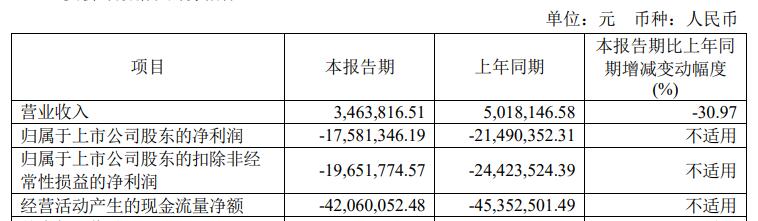 金迪克昨晚发布的2025年第一季度报告显示,2025年一季度,实现营业收入346.38万元,同比减少30.97%;归属于上市公司股东的净利润-1758.13万元,上年同期为-2149.04万元;归属于上市公司股东的扣除非经常性损益的净利润-1965.18万元,上年同期为-2442.35万元;经营活动产生的现金流量净额-4206.01万元,上年同期为-4535.25万元。