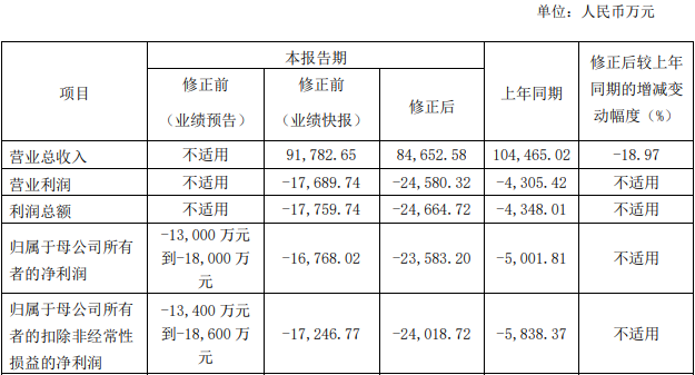 中国经济网北京4月22日讯 致远互联(688369.SH)昨日晚间发布2024年度业绩快报暨业绩预告更正公告。修正后,致远互联去年实现营业收入84,652.58万元,同比减少18.97%;归属于母公司所有者的净利润-23,583.20万元,上年同期为-5,001.81万元;归属于母公司所有者的扣除非经常性损益的净利润-24,018.72万元,上年同期为-5,838.37万元。